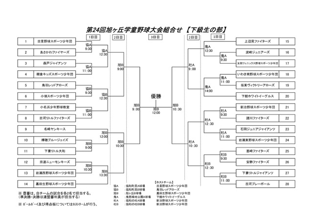 明日から始まる旭ヶ丘大会の組み合わせ表です。