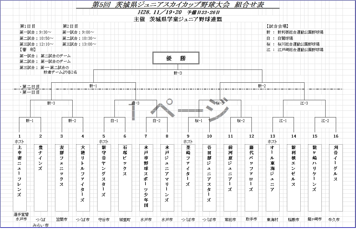 茎崎、大穂、友部、新守谷、石塚、藤代B、水戸野球、谷田部
