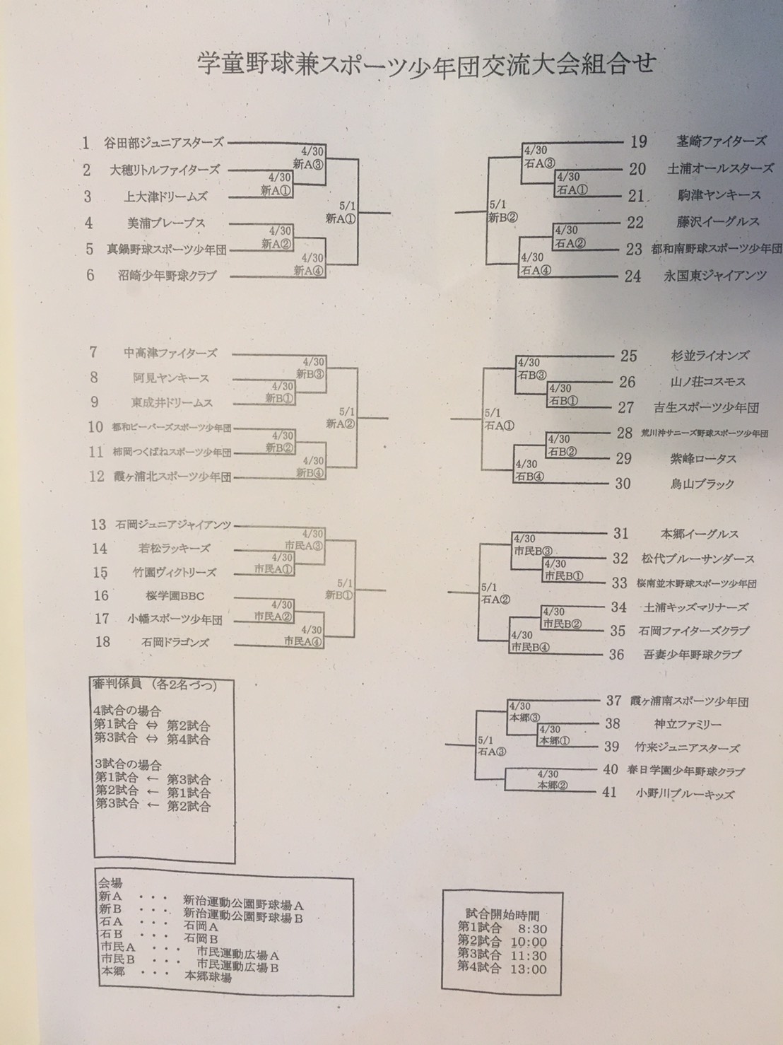 どなたか、セキスイハイム杯(旧のび伸び牛乳杯)の県南ブロックの対戦表わかる方いますか?